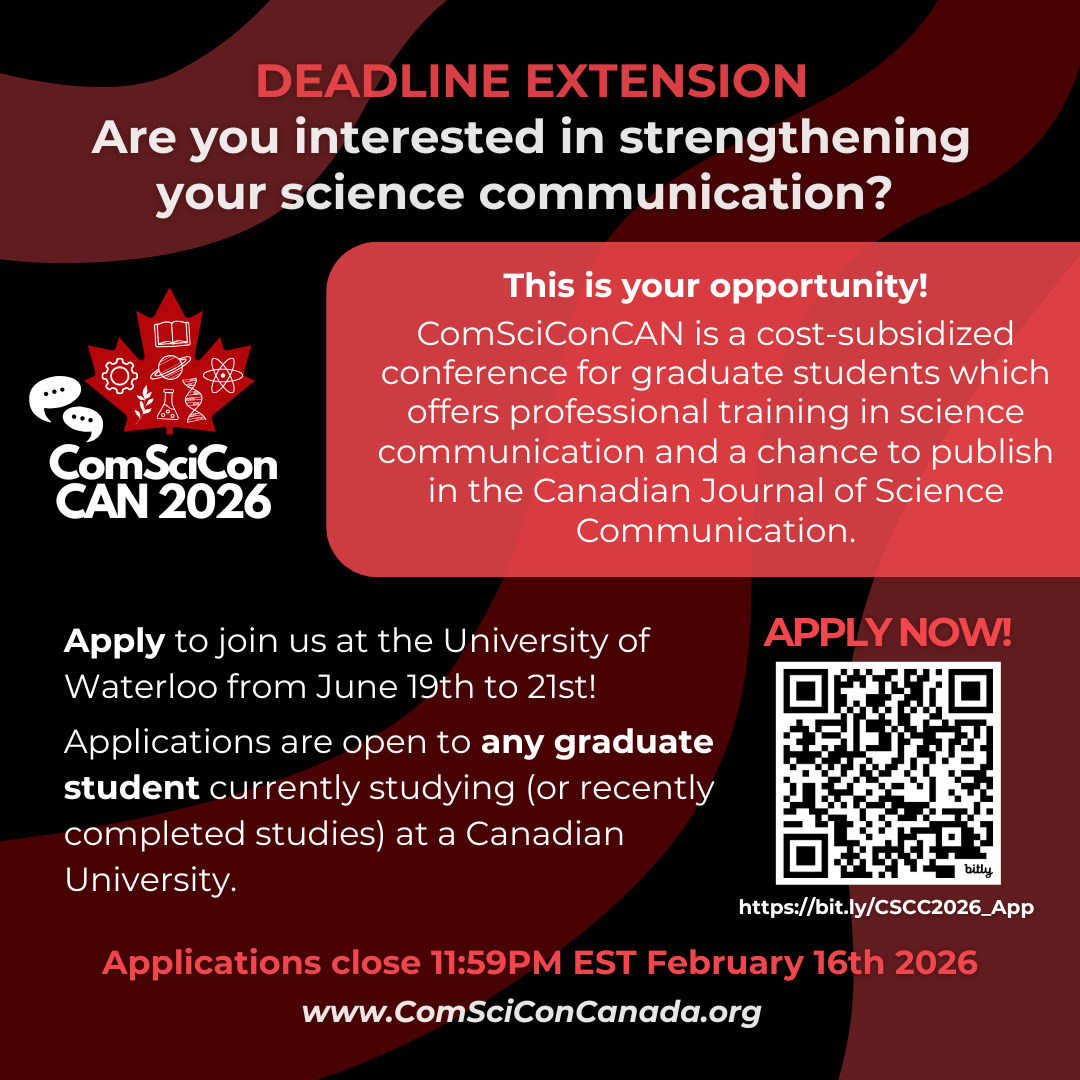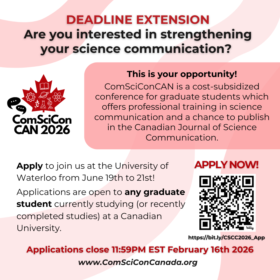 Fw: Deadline Extended: Graduate Science Communication Workshop Opportunity: ComSciConCAN!