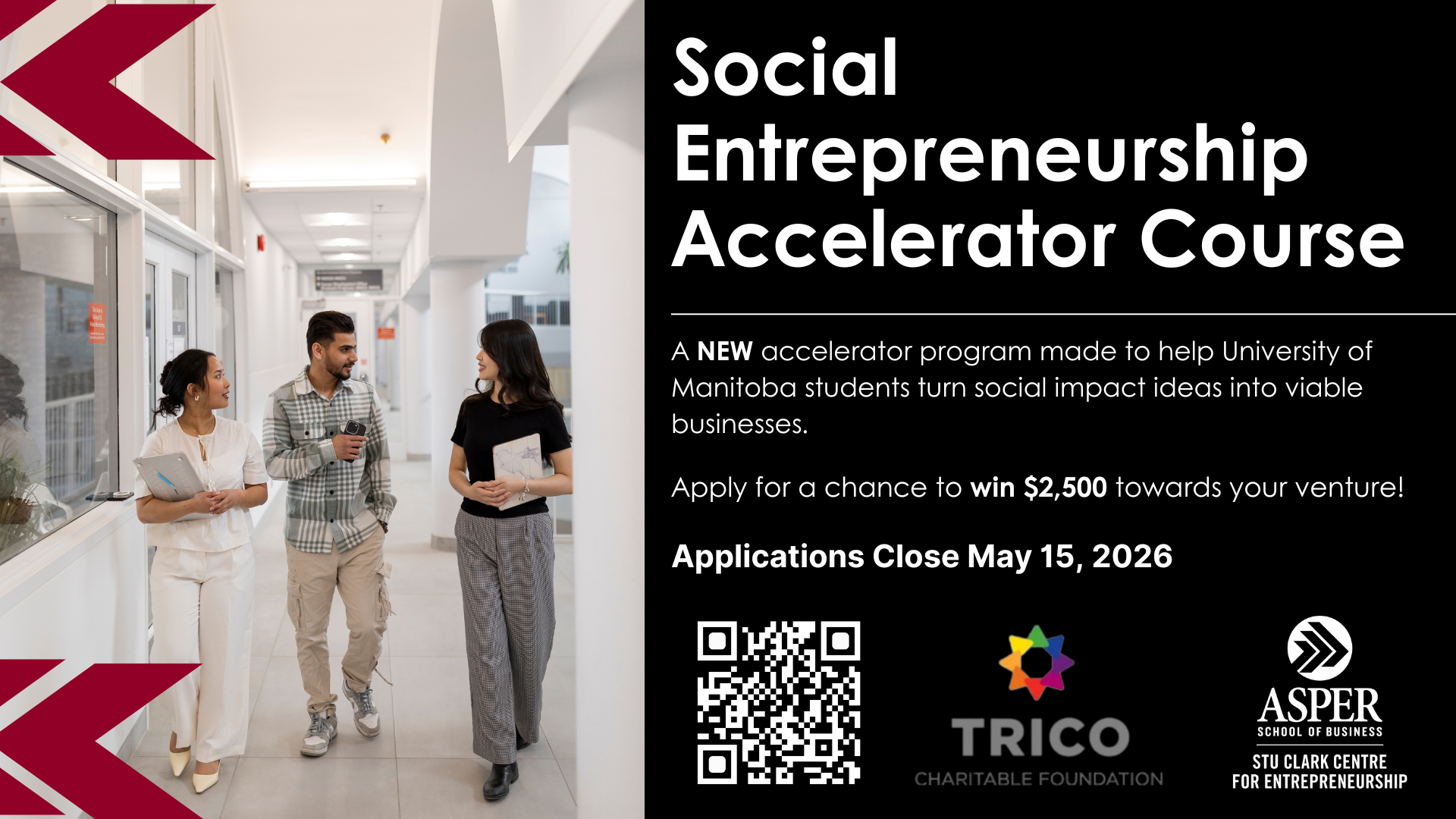 Students can apply here: https://umanitoba.startuptree.co/event/s/cCetsuS3w5EWMN5dmeNHfP/Social-Entre...